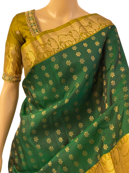Green Kanchipuram Pure Handloom Silk Saree