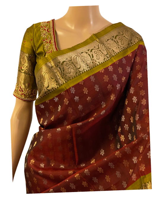 Green and Maroon Kanchipuram Silk Saree