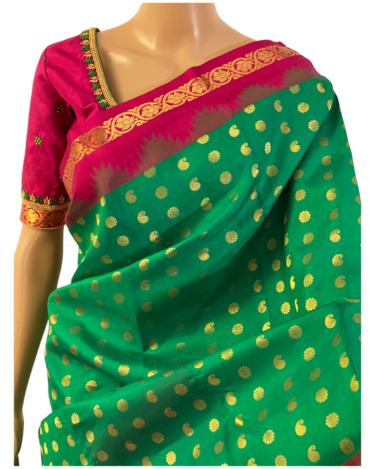 Green and Pink Kanchipuram Silk Saree