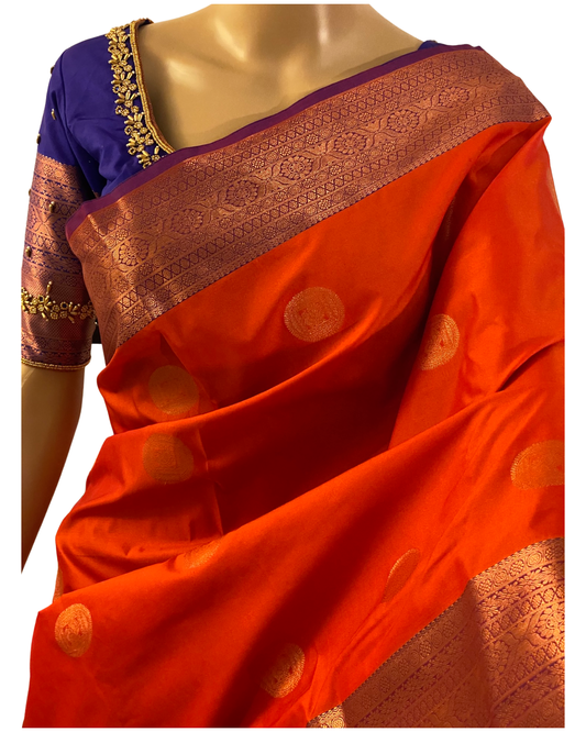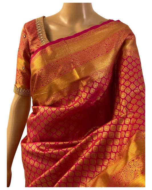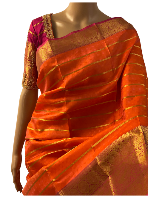 Orange and Pink Kanchipuram Handloom Silk Saree