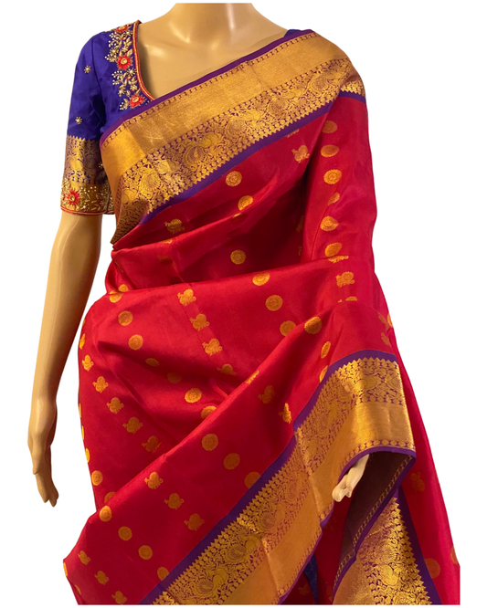 Red and Violet Handloom Kanchipuram Saree