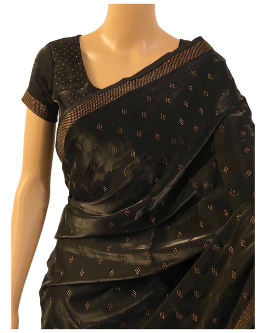 Designer Black Swarovski Satin Silk Saree