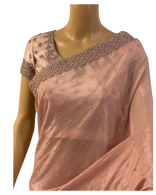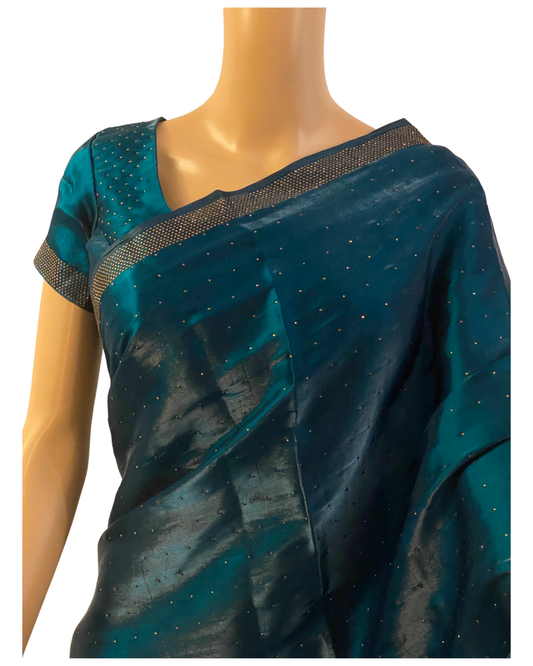 Designer Blue Swarovski Satin Silk Saree