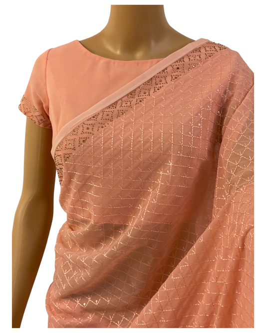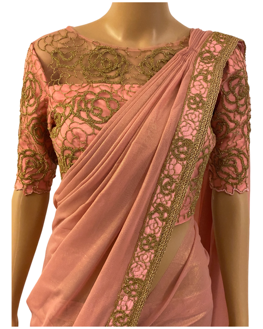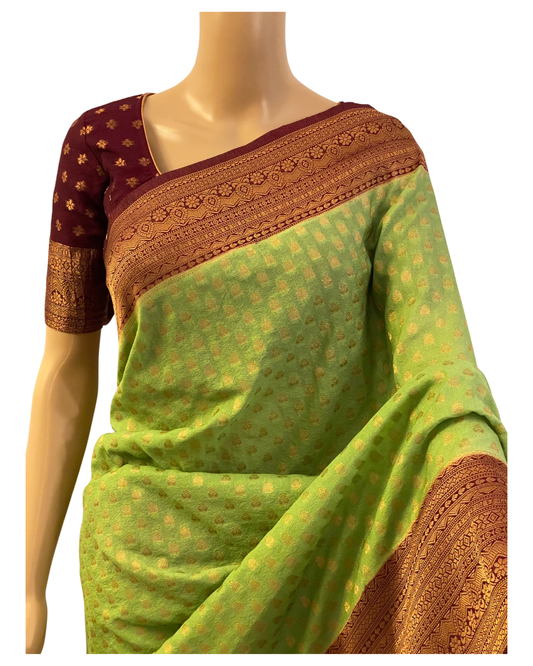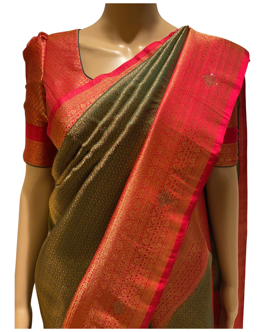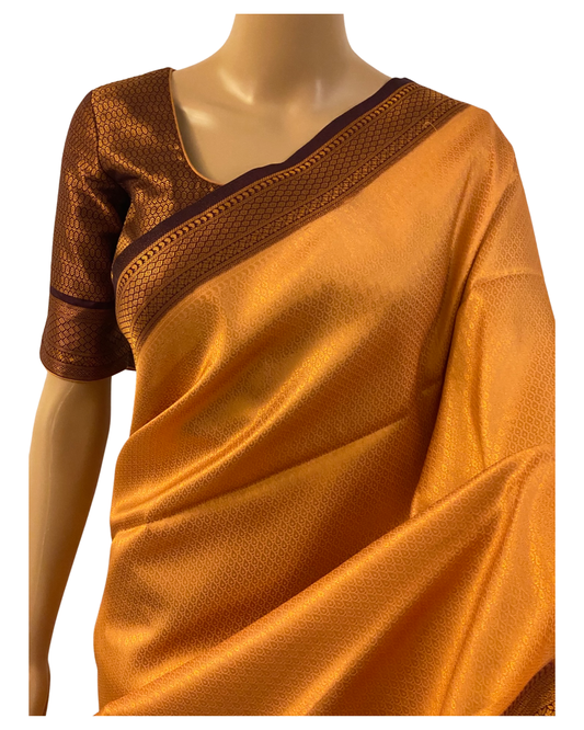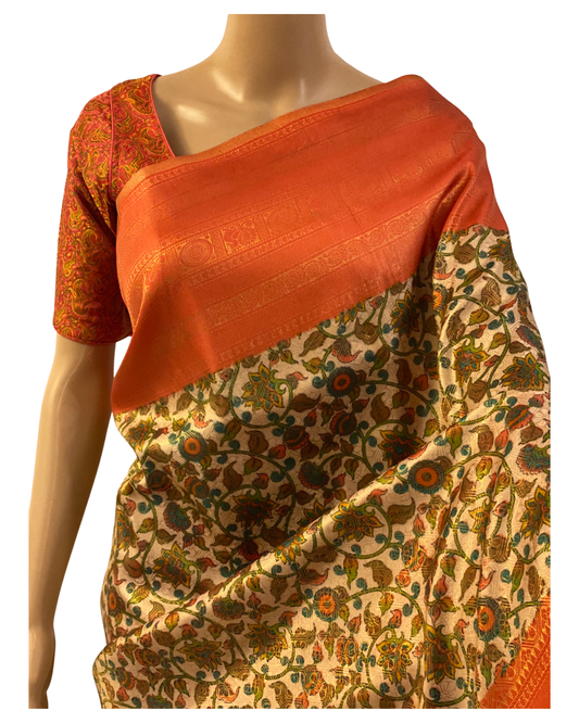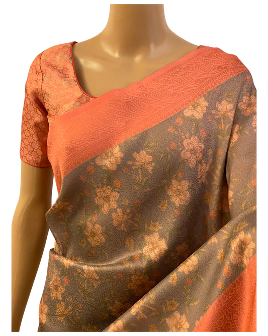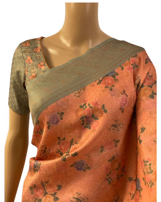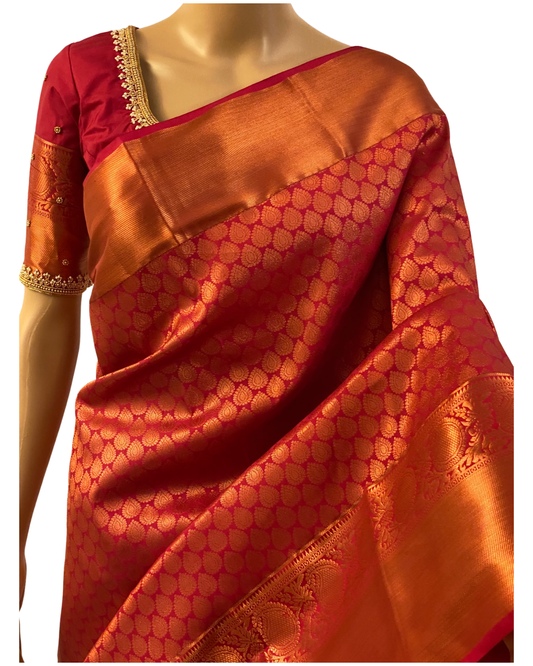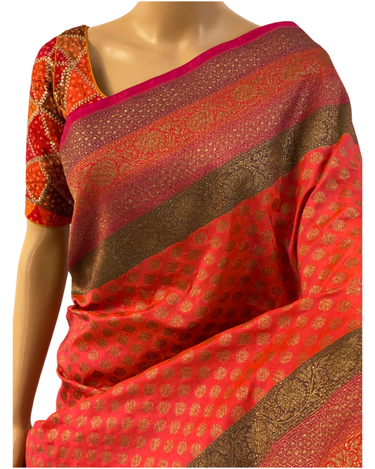 Orange and Pink Handloom Kaddi Banarasi Silk Saree With Designer Blouse