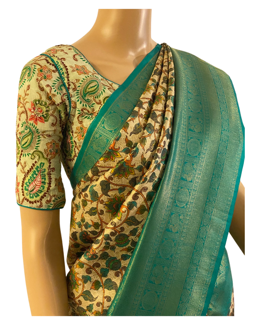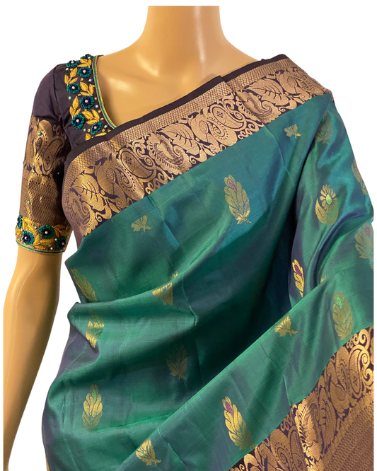Peacock Blue Pure Handloom Kanchipuram Silk Saree